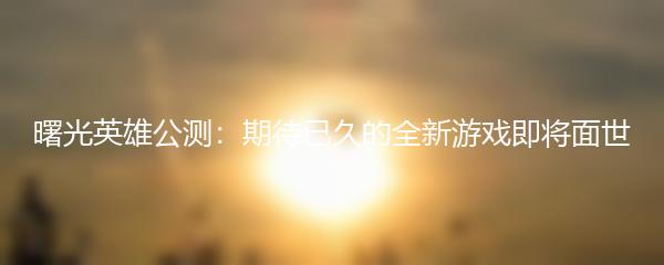 以上就是为大家带来的曙光英雄公测:期待已久的全新游戏即将面世。