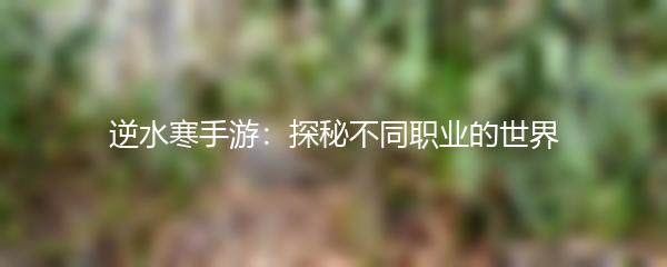以上就是为大家带来的《逆水寒手游:探秘不同职业的世界》。