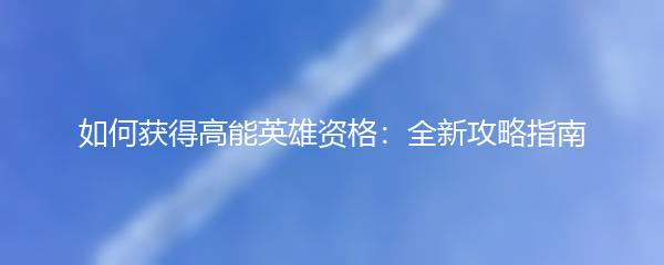 如何获得高能英雄资格:全新攻略指南