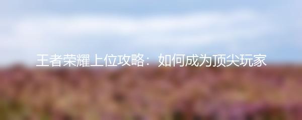 王者荣耀上位攻略:如何成为顶尖玩家