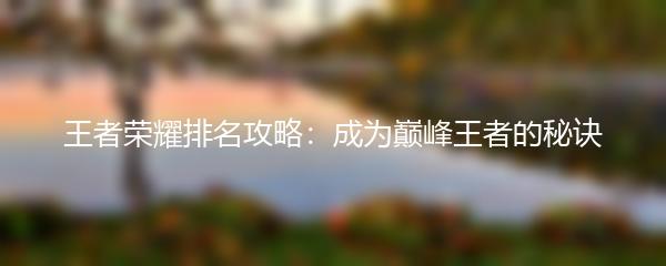 以上就是为大家带来的王者荣耀排名攻略:成为巅峰王者的秘诀。希望能够帮助广大玩家在游戏中取得更好的成绩,享受到更多的乐趣。