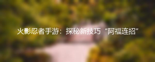 以上就是为大家带来的“火影忍者手游:探秘新技巧‘阿福连招’”。通过学习和应用新的战斗技巧,玩家们可以在游戏中取得更好的成绩,享受更加丰富多彩的游戏体验。