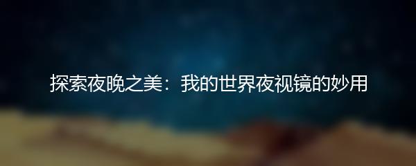 在游戏《我的世界》中,夜晚往往显得神秘而美丽,然而夜晚也是充满危险的。为了更好地探索夜晚的世界,夜视镜成了每位玩家必备的工具之一。