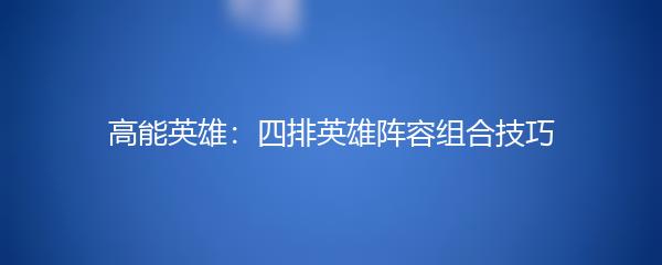 以上就是为大家带来的“高能英雄:四排英雄阵容组合技巧”,希望对大家在游戏中选择英雄和搭配阵容有所帮助。