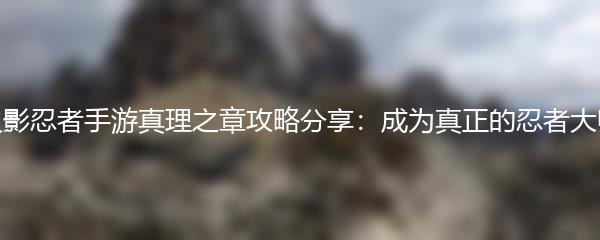 以上就是为大家带来的火影忍者手游真理之章攻略分享:成为真正的忍者大师。希望以上内容能够帮助大家在游戏中取得更好的成绩。