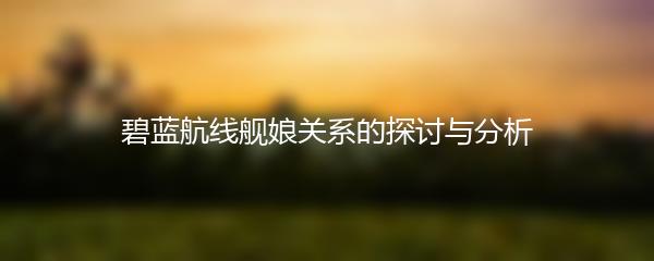 以上就是为大家带来的"碧蓝航线舰娘关系的探讨与分析",希望能给大家带来新的启发与思考。