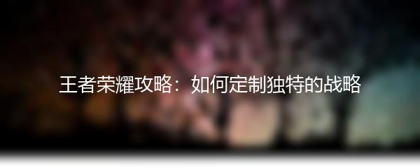 王者荣耀攻略:如何定制独特的战略